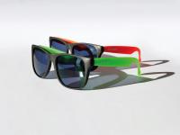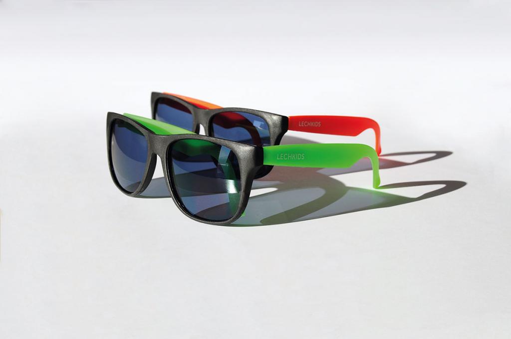 trendige Sonnenbrillen erhältlich in grün, rot, pink und orange mit der Aufschrift "Lechkids" am Bügel